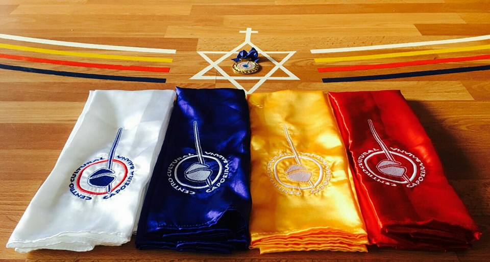 Na ocasião da formatura, os atletas recebiam um lenço azul, simbolizando a graduação inicial. Ao completar o Curso de Especialização, passavam a usar lenço vermelho. Os habilitados como tocadores de berimbau ostentavam lenço verde. Apontados como “contramestres” eram autorizados a usar a cor amarela. Um lenço branco […] com o “signo de São Salomão” bordado em verde num dos cantos, identificava os Mestres (DECANIO FILHO, 1997, p. 181).