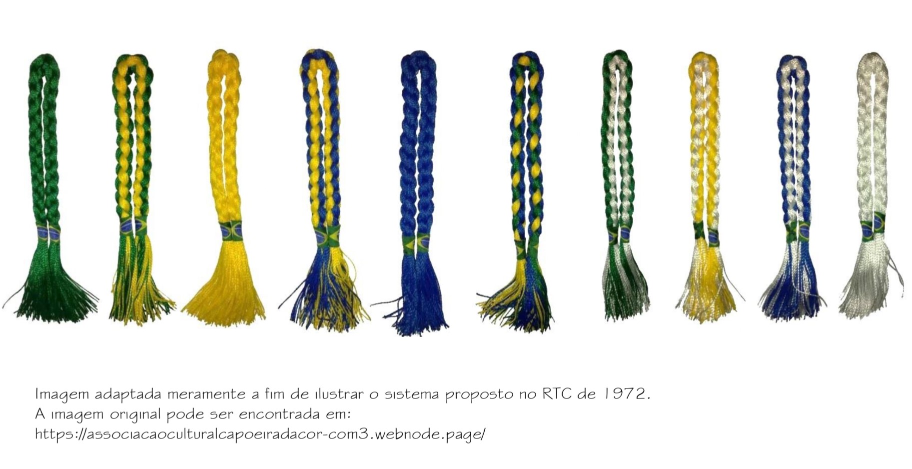 Em paralelo, também desde a década de 1960 passam a ser organizados eventos em que se pretendia uma maior organização da capoeira. Coube a Mestre Mendonça (Damionor Ribeiro de Mendonça, falecido em 2017) redigir o texto que teria início em 1966 e seria aprovado em 26 de dezembro de 1972 pelo Conselho Nacional de Desporto (CND-MEC) e se tornou o Regulamento Técnico da Capoeira (RTC). Este texto homologou tanto o sistema de graduação baseado nas cores do Brasil quanto a utilização do uniforme branco, preferencialmente. Ao invés de corda de algodão, a graduação era estabelecida em um cordel trançado, também chamado de cordão.
